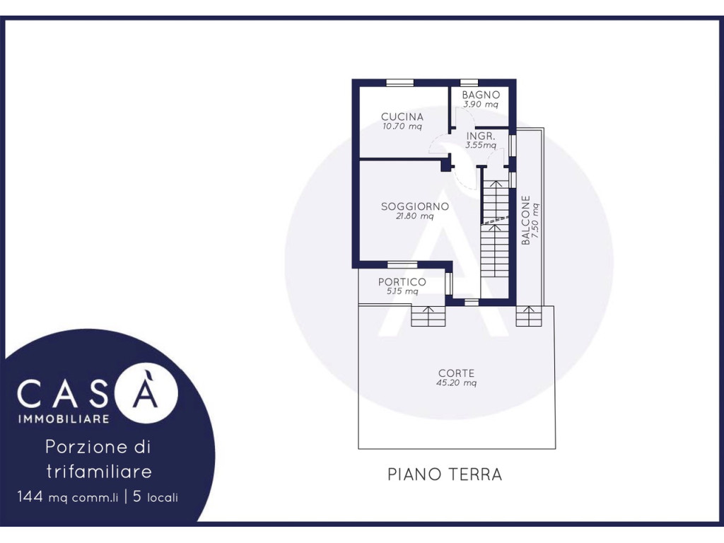Piano Terra: Doppio Ingresso - Soggiorno/Pranzo - Cucina - Bagno - Balcone - Portico - Corte Privata