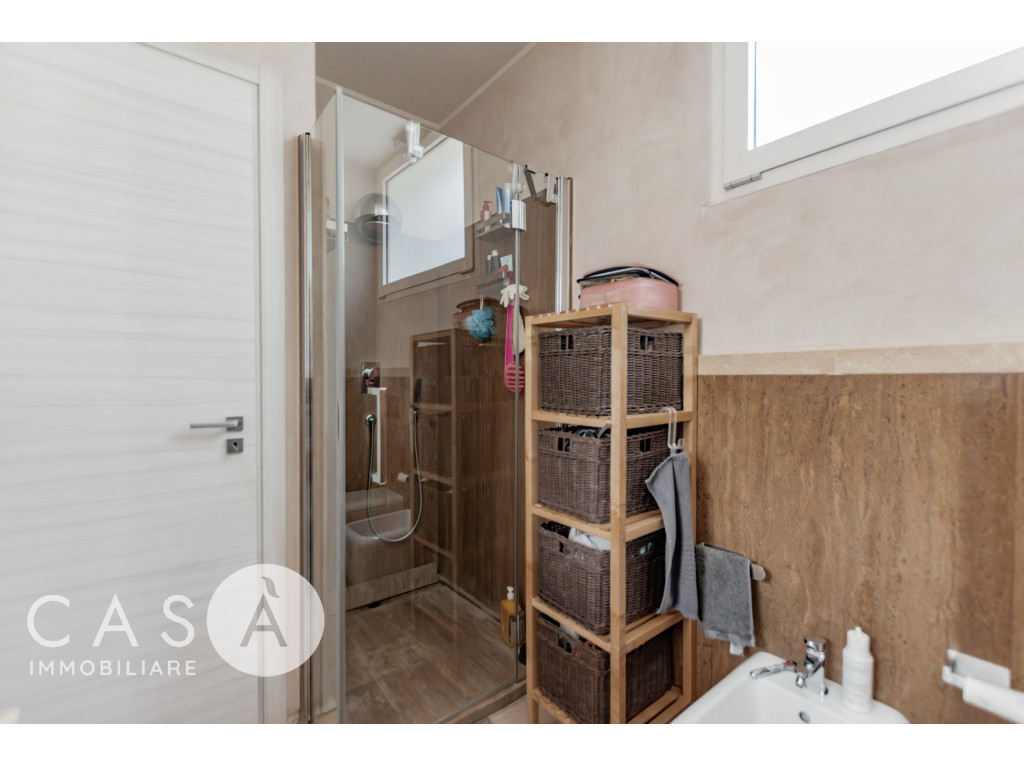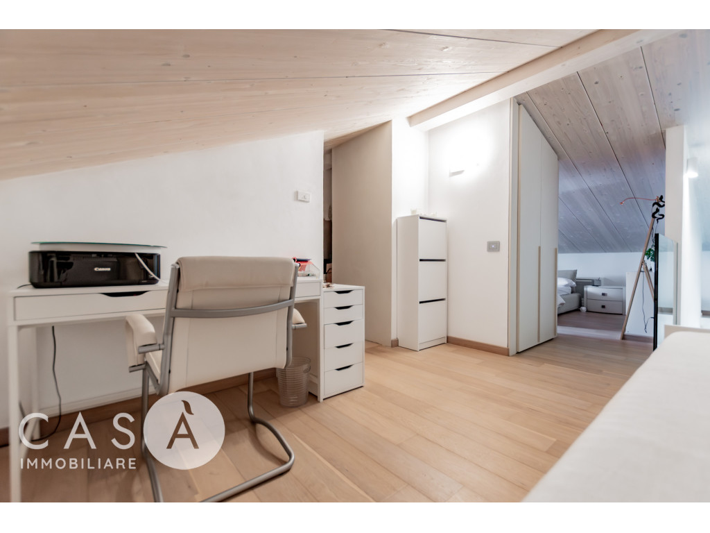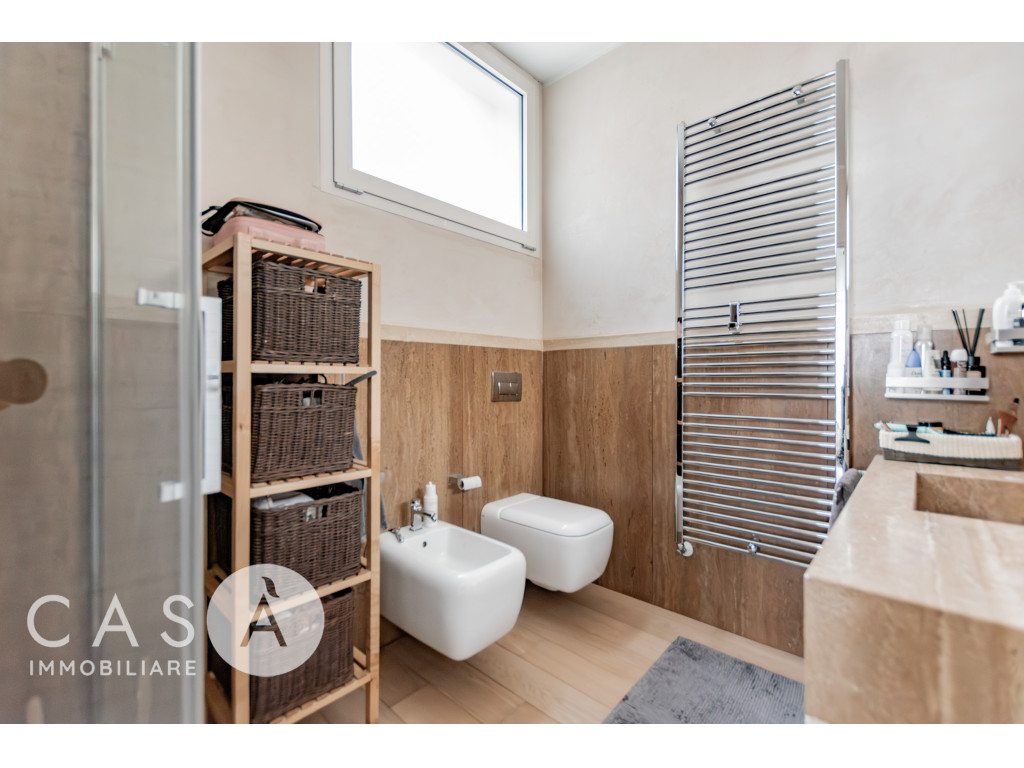 Al primo piano mansardato è stato predisposto un bagno con una terza camera, mentre al piano interrato troviamo uno spazio adibito a palestra o zona relax con accesso diretto al garage di proprietà.