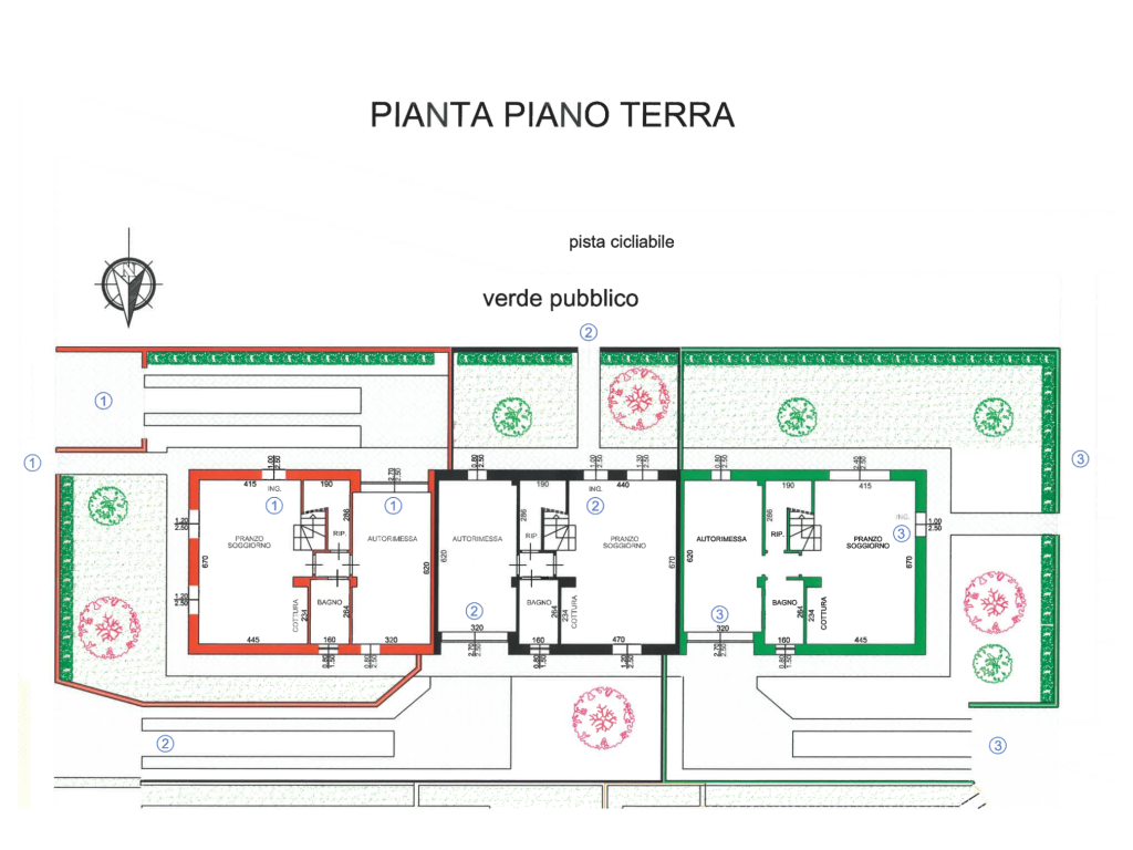 Piano Terra: Soggiorno cucina open space - Bagno - Ripostiglio - Autorimessa
