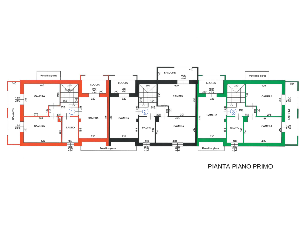 Piano Primo: 3 Camere da letto - Bagno - Balcone - Loggia