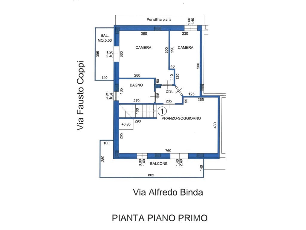 Piano Primo: 3 Camere da letto - Disimpegno - Bagno - Sottotetto