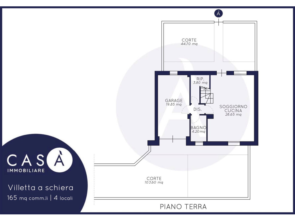 Piano Terra: Soggiorno cucina open space - Autorimessa - Ripostiglio - Bagno